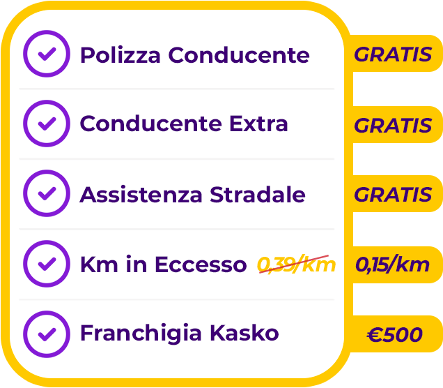 In caso di danni al veicolo, sia causati da te, sia da terzi, ti verrà addebitata una penalità risarcitoria per far fronte agli aumenti assicurativi che dovremo sopportare. Inoltre, nello specifico caso di veicolo coperto da Kasko e se i danni sono causati da te, ti verrà addebitata una Franchigia, solitamente di 500€ salvo condizioni differenti.